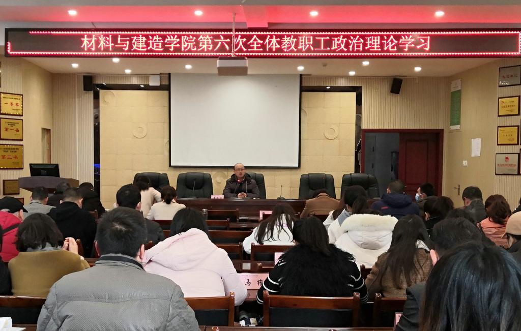 11月25日下午,材料与建造学院在材料大楼召开了全体教职工第六次政治理论学习大会。副院长单荣华及全体教职工参加了会议。会议由单荣华主持。