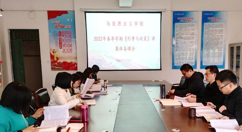 为认真贯彻落实教育部办公厅关于《高校“形势与政策”课教学要点(2022年上辑)》(以下简称《教学要点》)的通知精神,及时推动党的创新理论进教材进课堂进头脑,近日,马克思主义学院召开2022年春季“形势与政策”集体备课会。学院院长曹武军、副院长蹇勇以及形势与政策教研室全体教师参加备课会。