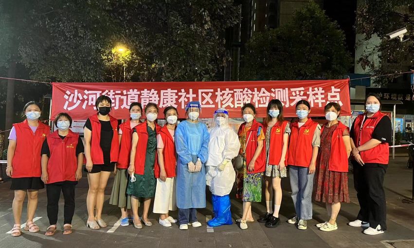 周予涵(左七)与社区核酸检测志愿者合影