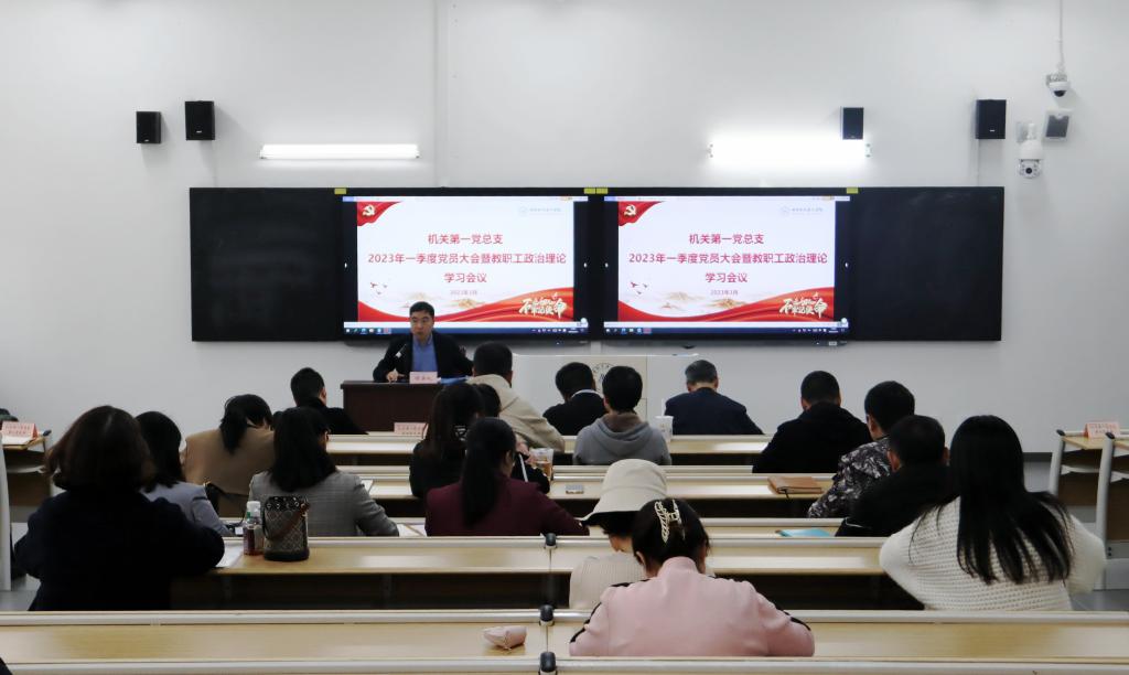 3月31日下午,机关第一党总支召开第一季度党员大会暨教职工政治理论学习会,深入学习习近平总书记在党的二十届二中全会、全国两会期间发表的系列重要讲话精神和会议精神,学习贯彻习近平总书记关于调查研究的重要论述和中共中央办公厅印发的《关于在全党大兴调查研究的工作方案》。会议由总支书记姜川主持。