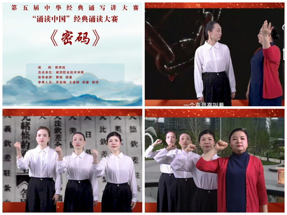 同日,“诵读中国”经典诵读大赛也举行了校赛决赛。公共教育学院宋丽娟、王春梅、梁春、杨淇组建的参赛团队以作品《密码》荣获一等奖,成功入围省赛。